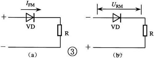 [3]、晶體二極管的主要參數(shù)有:(1) 最大整流電流IFMFM,是指允許正向通過PN結(jié)的最大平均電流(圖③a)。使用中實際工作電流應(yīng)小于IFM,否則將損壞二極管。(2) 最大反向電壓URM,是指反向加在二極管兩端而不致引起PN結(jié)擊穿的最大電壓(圖③b)。使用中應(yīng)選用URM大于實際工作電壓2倍以上的二極管。(3) 檢波或高頻整流二極管的最高工作頻率fM,至少應(yīng)2倍于電路實際工作頻率。(4) 穩(wěn)壓二極管的穩(wěn)定電壓UZ值應(yīng)符合電路要求。